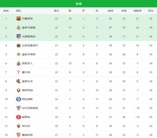 随着皇马21绝杀+贝蒂斯21逆转!西甲最新积分榜:巴萨1分领跑